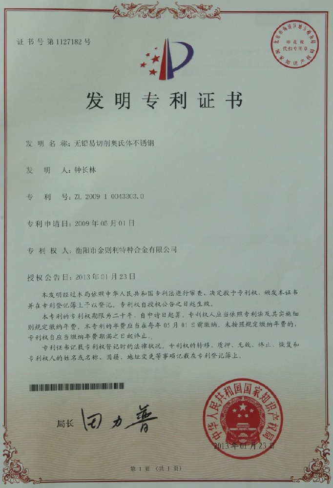 衡陽市金則利特種合金股份有限公司成立于一九九九年十二月,注冊資本人民幣兩千兩百萬元。注冊地址:衡陽市雁峰區(qū)白沙洲工業(yè)園長塘路2號。公司主營耐蝕軟磁合金,為湖南省高新技術(shù)企業(yè)。公司自成立以來,即致力于耐蝕軟磁合金的研發(fā)。 研制出的JL-31(00Cr13si2Pb)、JL-31B(00Cr13si2)、JL-31BS(00Cr13Si2S)、JL-37B(0Cr17Si2)、JL-37(0Cr17···